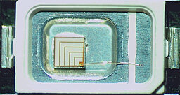 Large area displays composed of LED panels are being used for advertisement and announcements, for example in sport arenas. There can be up to millions of RGB-LEDs in one display. Each RGB-LED contains a blue, a green and a red emitting semiconductor chip. By steering the currents dedicated to each of these 3 chips, a large variety of colors can be achieved my mixing the emission spectra. Thermally stable silicones are used as encapsulants for the chips in the package.