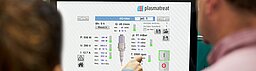 Optical Monitoring/Management: To ensure uniformly high plasma quality, the emergent plasma stream is spectrally monitored on a continuous basis. A sensor integrated into the plasma jet measures the light emitted by the plasma as part of a one-channel optical detection system. This is followed by a permanent amplitude evaluation in the relevant spectral range of the emitted light. This monitoring is independent of plasma generation and reliably describes the process parameters of the plasma.