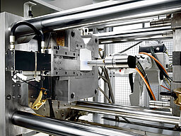 The compact structure of the head of the Openair-Plasma® jet allows its adaptation to a six-axis robot so that selective surface treatment of the bonding area can be carried out later with the injection mould open and under a normal atmosphere. The six-axis robot affords great degrees of freedom in movement which can be exploited with flexible moving lines for plasma pretreatment. Integration within the process chain ensures a continuous, robust and reliable sequence of operations offering advantages for novel part designs and opportunities for savings in mould and process technology.